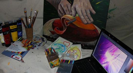 I use many different mediums, such as acrylics, pencil and wax crayons, colored markers, photography, and electronic art and video using Adobe Creative Cloud. I believe that working in a single medium is restrictive to my artistic process. Each idea manifests in its own individual style.